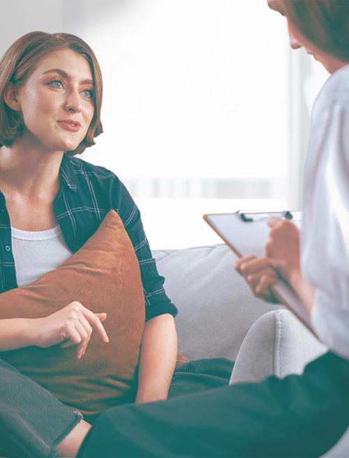 Девушка разговаривает с психотерапевтом